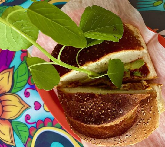 An extroverted chipotle adobo sauce is the voice of a chicken sandwich at this colorful eatery near the train station in Red Bank. Let the voice of its chef-owner steer you to its exact-right accent.