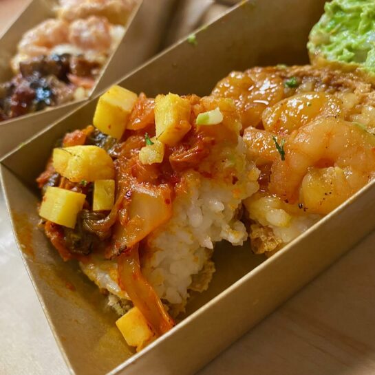 Get yer peanuts, peaches, ‘bap, burrito with salmon, and a confection that billows with subtle sweetness right now, while they’re exactly right for eating. They’re all favorites from the fortnight immediately past.