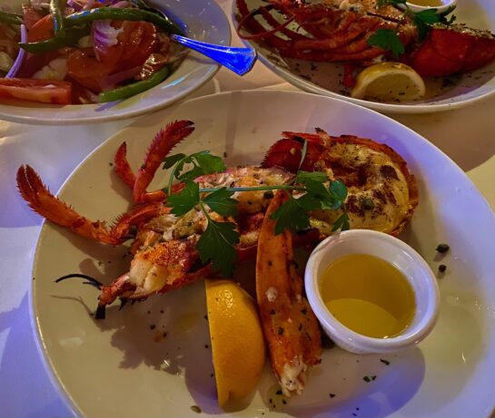 What could make a luxurious lobster salad even more luxurious? Stuffing it into avocados and serving it accompanied by oranges ratcheted up with a caring touch – that’s what.