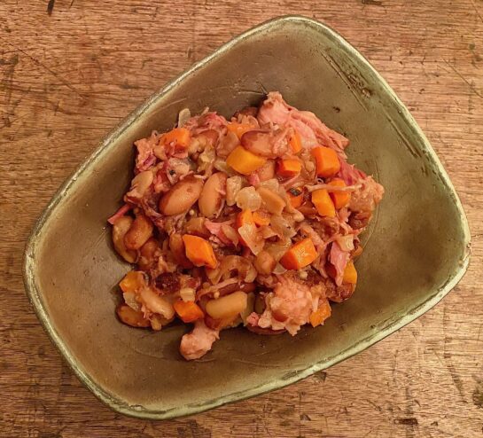 What do you do with an XL-size ham hock smoked by Pulaski Meat in Linden? Add it to beans for a hearty stew and, while you’re at it, throw in a smoked baby-back rib just for fun.