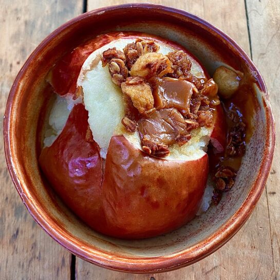 It’s the simplest of autumn dishes, fit for a holiday dinner finale as well as breakfast the next morning. Add one little crowning glory, if you’d like, to give it a spare bit of sultry sweet.
