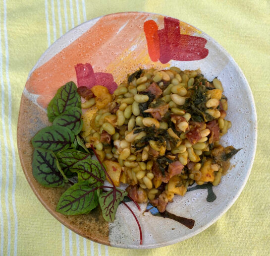Surprisingly quick and easy to cook, unsurprisingly satisfying to eat with its beans-and-greens base, this cassoulet’s smoked pork and dried fruit accents get a lift from energizing heat.