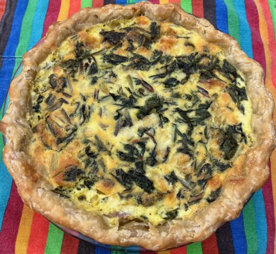 Pretty in its vibrant colors, this green partners with salty cheddar curds in a quiche that suits meals of many sorts.