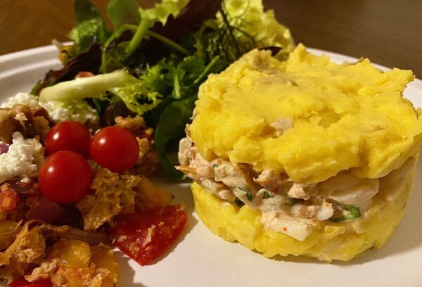 Party time? Think this versatile dish from South America that can star shellfish or chicken or vegetables or anything that partners with potatoes. Its flexibility is its touchstone.