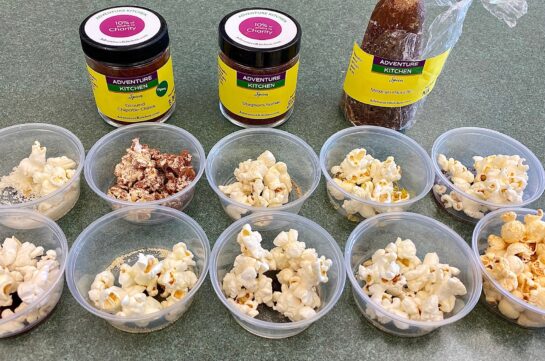 POPCORN, SPICE AND FINDING FLAVOR Two dozen students in the Upper School of Gill St. Bernard’s School, Gladstone, spent the days of their annual year-end unit exploring new foods, learning the art and science of tasting, and talking about how to accurately convey their experiences. In this four-part series in The Peasant Wife, the student food critics speak out about flavor as well as what foods they tasted and favored during their wide-ranging week of eating. In this, the final installment in our series, the students talk about pinpointing flavor by tasting popcorn seasoned with various spices. Three of the seasonings were purchased from Adventure Kitchen, Montclair. Founded and operated by Lynley Jones, spice merchant and culinary teacher (who also runs a summer culinary camp for kids), Adventure Kitchen is exactly what its name states: a source for curious cooks of all ages to have adventures in food. Lynley recommended the Gill students season their tasting vehicle – the popcorn – with something smoky and somewhat hot (AK’s Ground Chipotle Chiles); something tart-acidic and citrusy-sour (AK’s Staghorn Sumac, a ground bush berry popular in the Eastern Mediterranean); and something that leans sweet, but definitely is not one-dimensional (AK’s Mexican Piloncillo, a raw form of pure cane sugar often referred to as Mexican brown sugar). For more on Adventure Kitchen, visit www.adventurekitchen.com. – Andy Clurfeld